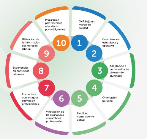 Asimismo, pretende fomentar la colaboración y establecer vínculos entre centros educativos, empresas, familias y otras entidades e integrar la orientación como un elemento estratégico en los centros educativos, desde una perspectiva de la orientación como responsabilidad colectiva de todos los agentes educativos.